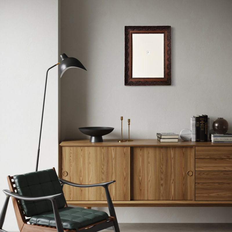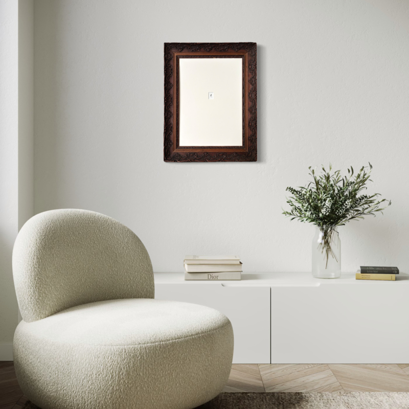 OverzichtPin-up portret van mier in bruine antieke lijst