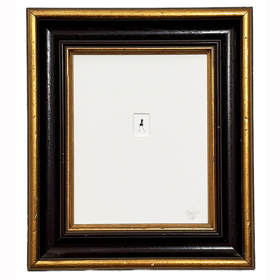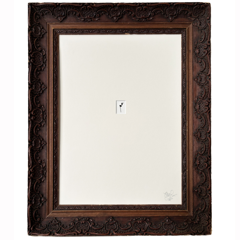 Sexy Mier in antieke zwart met gouden lijstPin-up portret van mier in zwart met gouden antieke lijstPiepklein miertje met een grootse missie.
